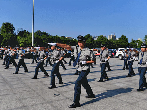 保安隊(duì)員進(jìn)行隊(duì)列會(huì)操和擒敵拳展示